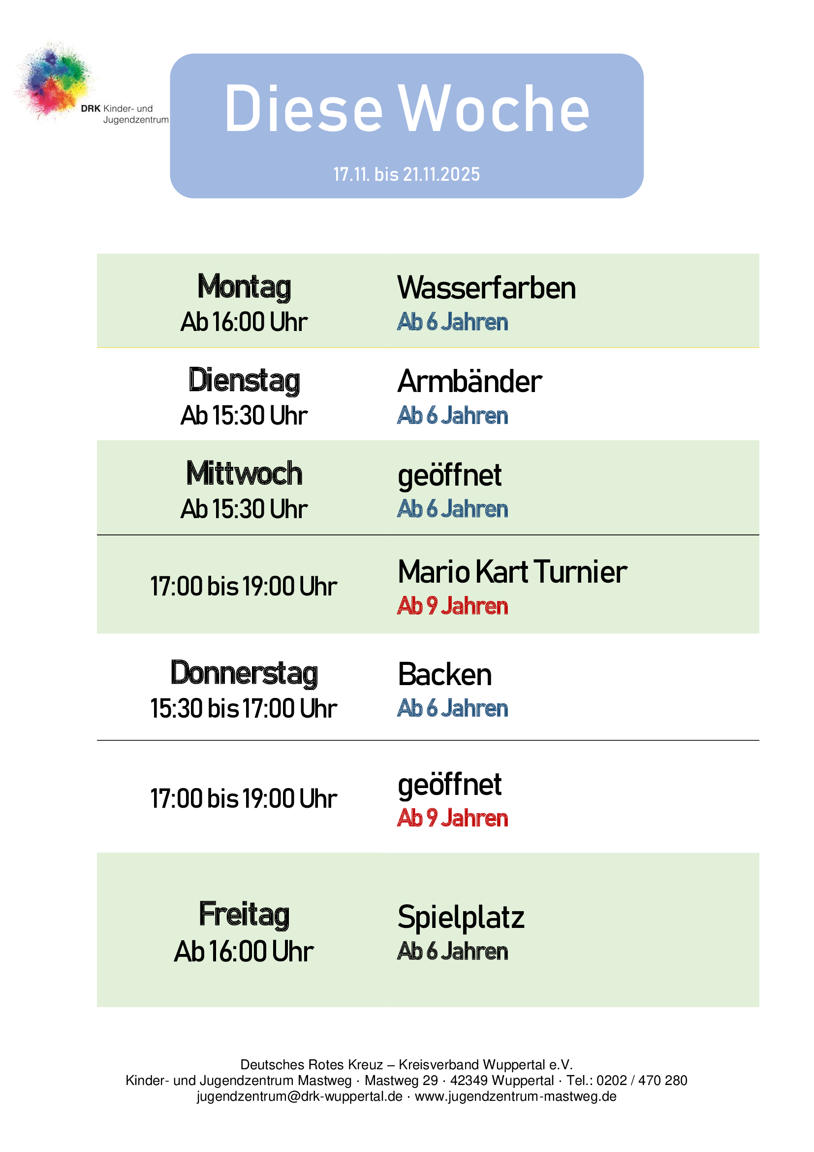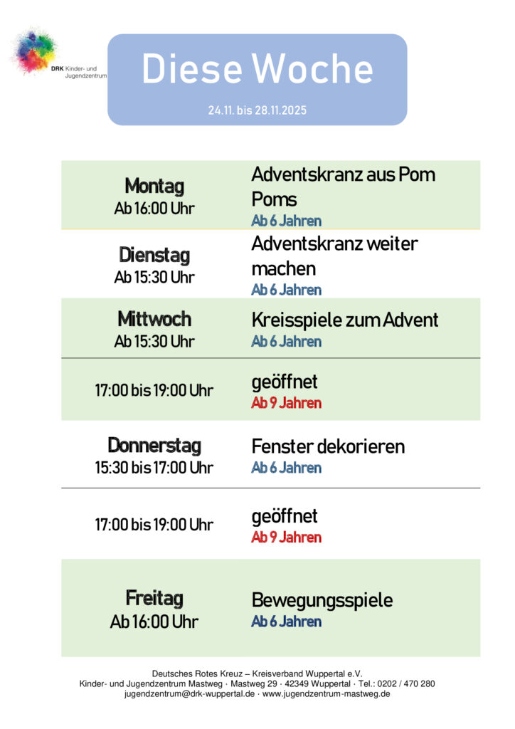 Das Wochenprogramm wird in der Regel montags veröffentlicht.